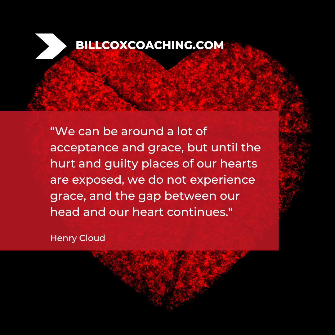 Henry Cloud says it like this: "We can be around a lot of acceptance and grace, but until the hurt and guilty places of our hearts are exposed, we do not experience grace, and the gap between our head and our heart continues."